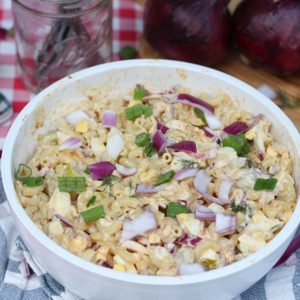 Deviled Egg Pasta Salad with RealSweet Rubies